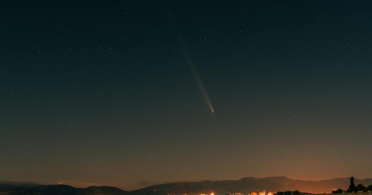 A breathtaking view of a comet streaking across the night sky over Merzifon, Amasya, Türkiye.