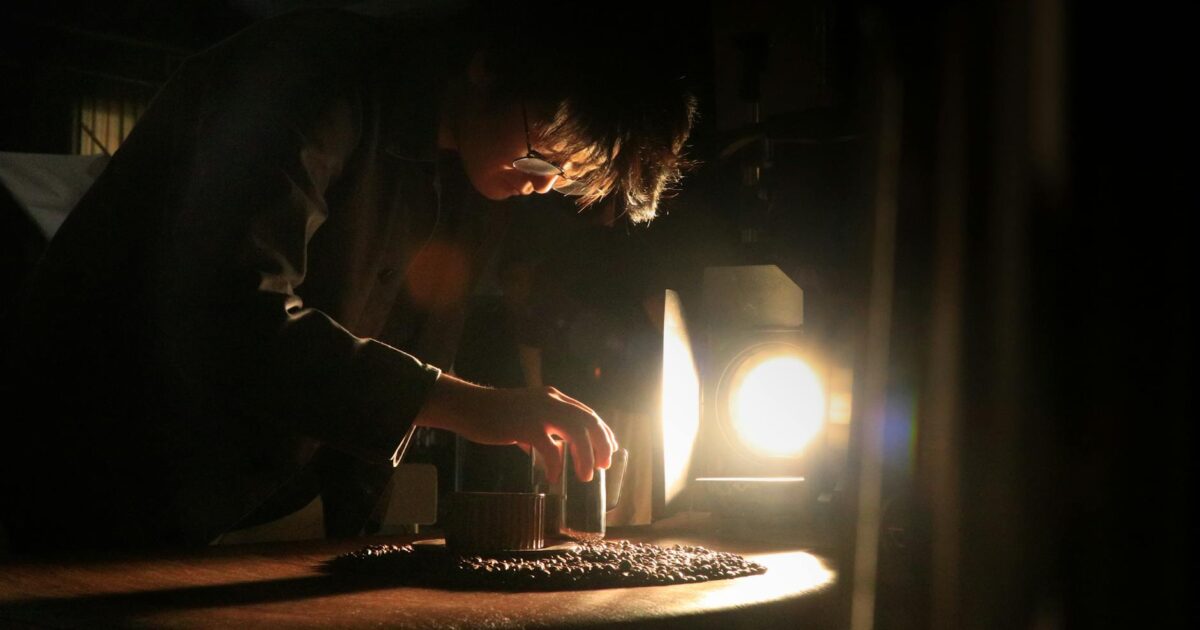 Artisan intensely focuses on crafting in dramatic lighting, highlighting the dedication and skill involved in craftsmanship.