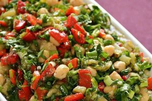 آموزش طرز تهیه سالاد نخود . با این آموزش آشپزی در هفت گنج همراه باشید. مواد لازم: 1 لیوان نخود آب پز شده 3 عدد بادمجان کبابی شده 3 عدد فلفل کاپیا کبابی شده 2...