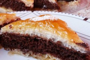 آموزش طرز تهیه باقلوا با کیک شکلاتی . با این آموزش آشپزی در هفت گنج همراه باشید. مواد لازم: برای کیک: 4 تخم مرغ – 1 لیوان شکر – 1ونیم لیوان آرد...