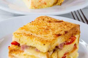 آموزش طرز تهیه کاسرول ژامبون و پنیر . با این آموزش آشپزی در هفت گنج همراه باشید. تنها با ۴ ماده یک صبحانه عالی درست کنیم. این غذا با لایه های نان، ژامبون، گوجه...